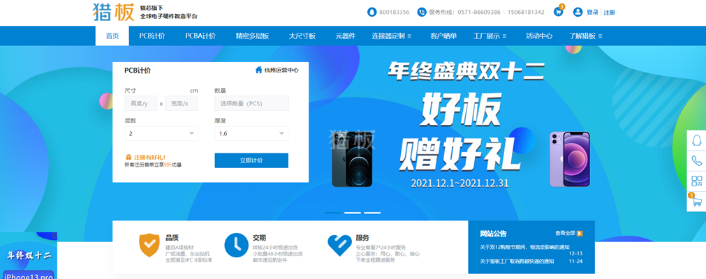 三、账号创建成功后,首页点击“PCB计价”跳转至计价页面。